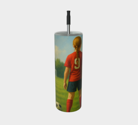 Ce gobelet en acier inoxydable est l’allié parfait des journées actives. Avec son visuel vibrant d’une joueuse de soccer en action – chandail rouge, numéro 9 bien en vue – il t’inspire à foncer droit au but, que tu sois sur le terrain ou dans la vraie vie.