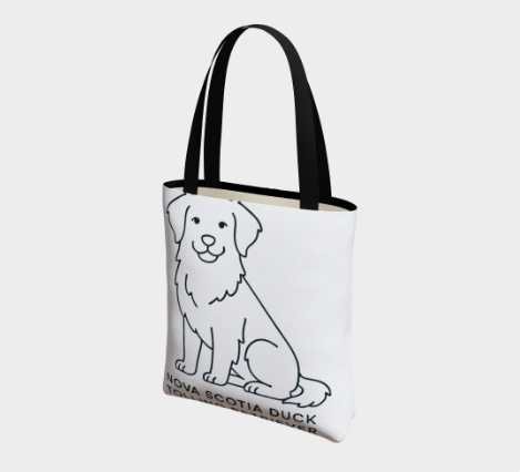 Ce sac spacieux et élégant met en valeur le retriever de la Nouvelle-Écosse – ou Toller – dans un style minimaliste noir, tout en finesse. Sur un fond blanc éclatant, le design épuré laisse toute la place à l’expression calme et intelligente de ce chien si attachant. Un essentiel à la fois pratique et inspiré.